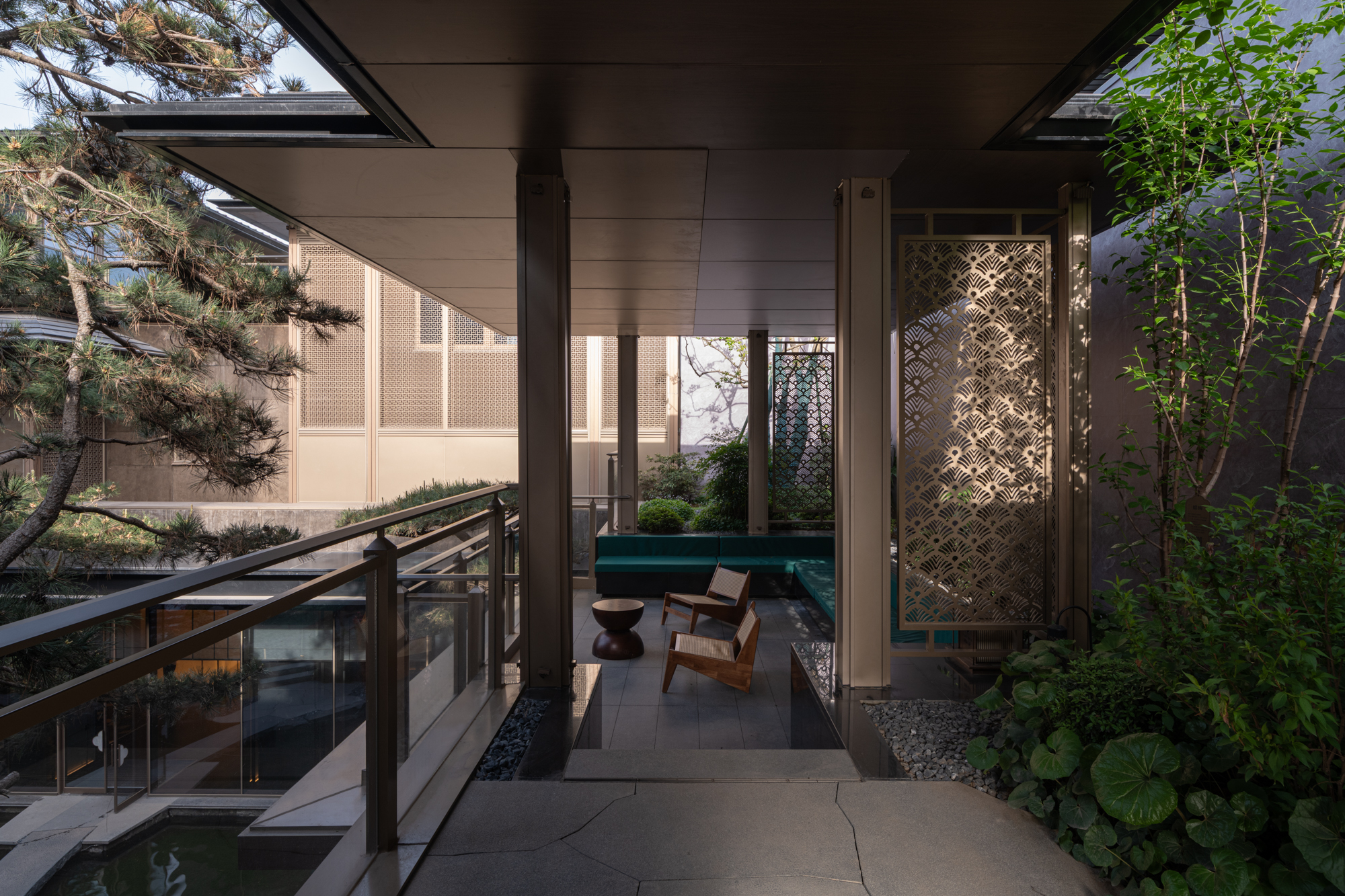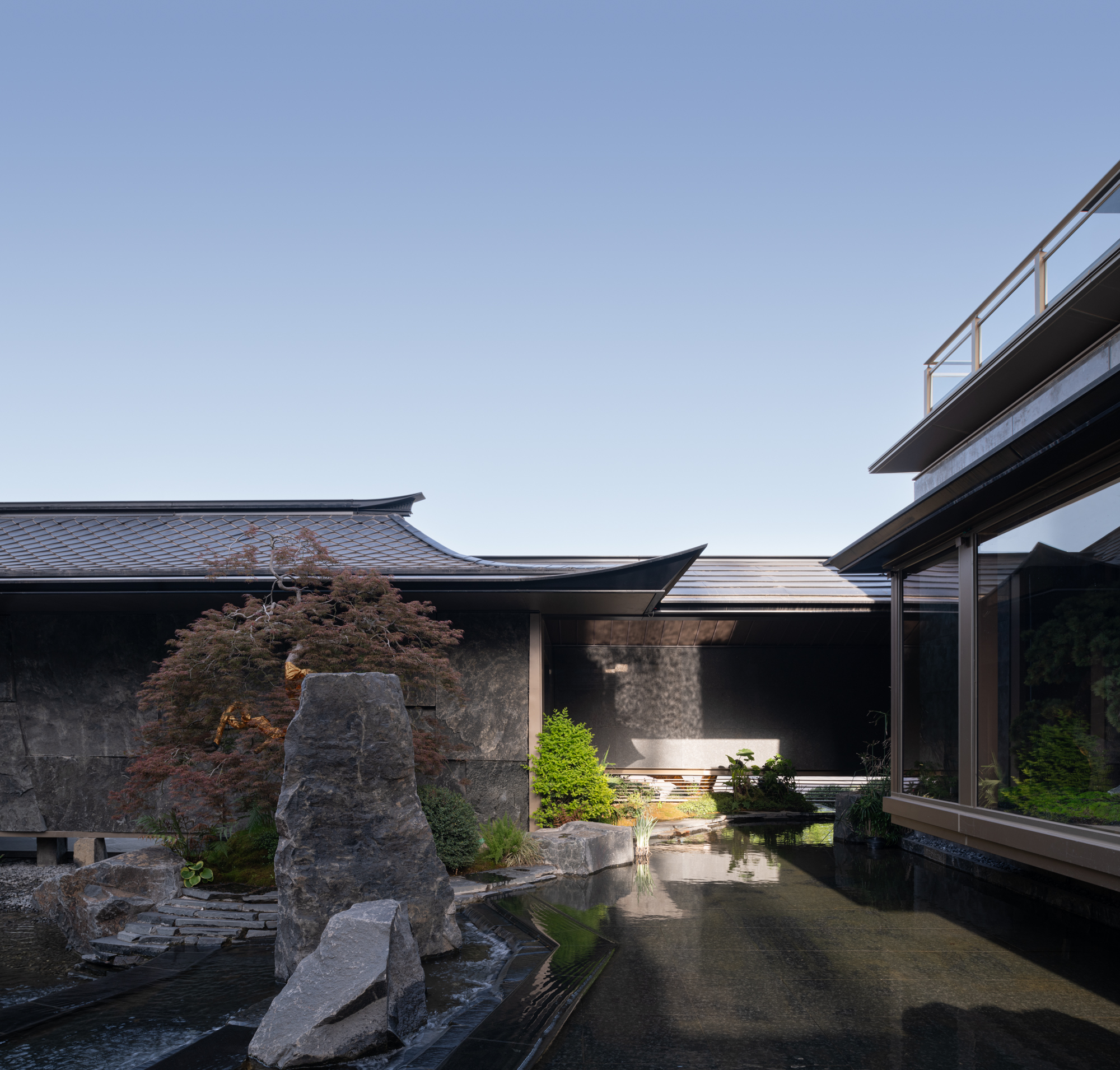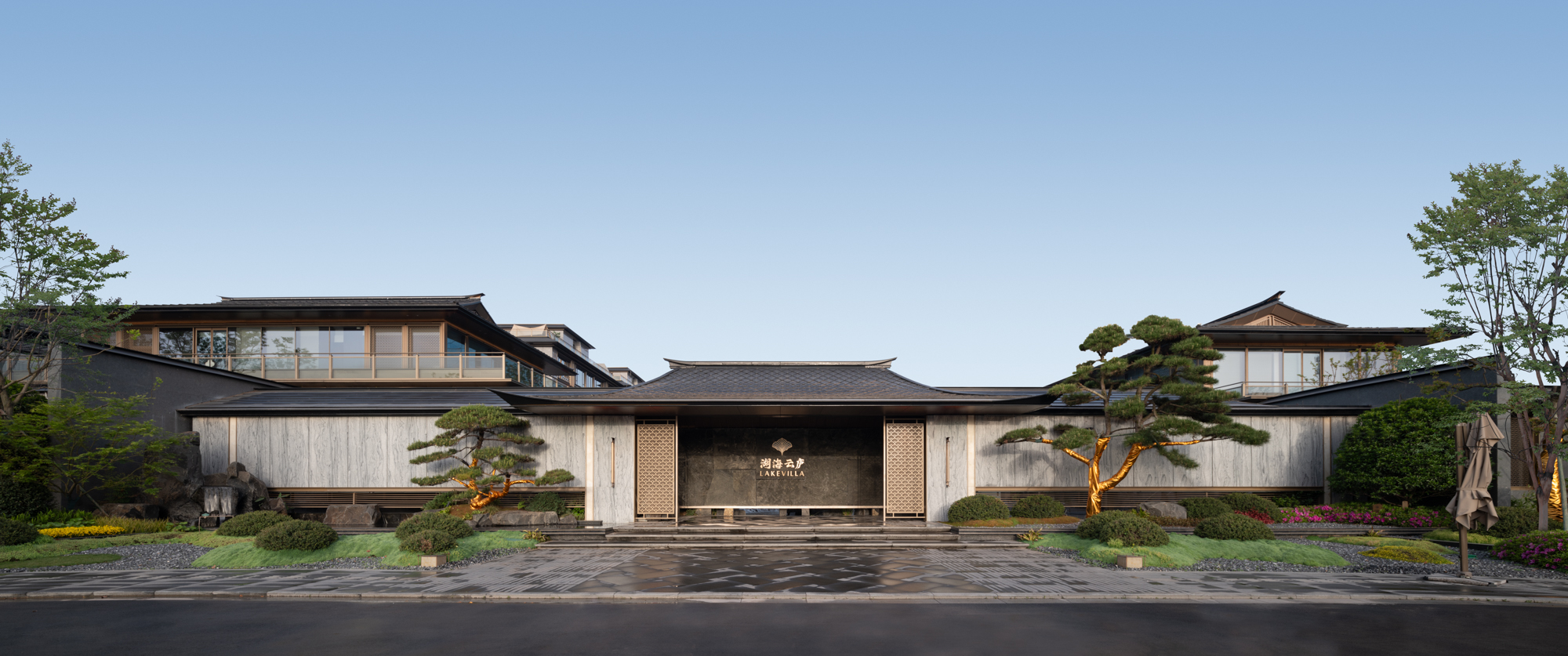 项目位于湖海塘湿地西侧,具备独特的地理景观优势。对标一线城市,借鉴杭州咏溪云庐项目,依托原生湖泊,以水为主题,结合周边人文、历史、环境、地貌等特点打造一处被大自然包围的独一无二的静谧之境。南宋时期,贵族府第住宅崇尚临水筑台,将山水融为一体,来表达对自然的向往。中国文化不再是风格符号上的再现,更是精神意境的传承。我们通过对传统宋式建筑形制特征及细部构造上的细节选取,将山花、通长寻杖、交绞造、避风䈋等多种宋代典型建筑元素进行风格转译,使其保留建筑原本的飘逸雅致,又更加轻盈现代。