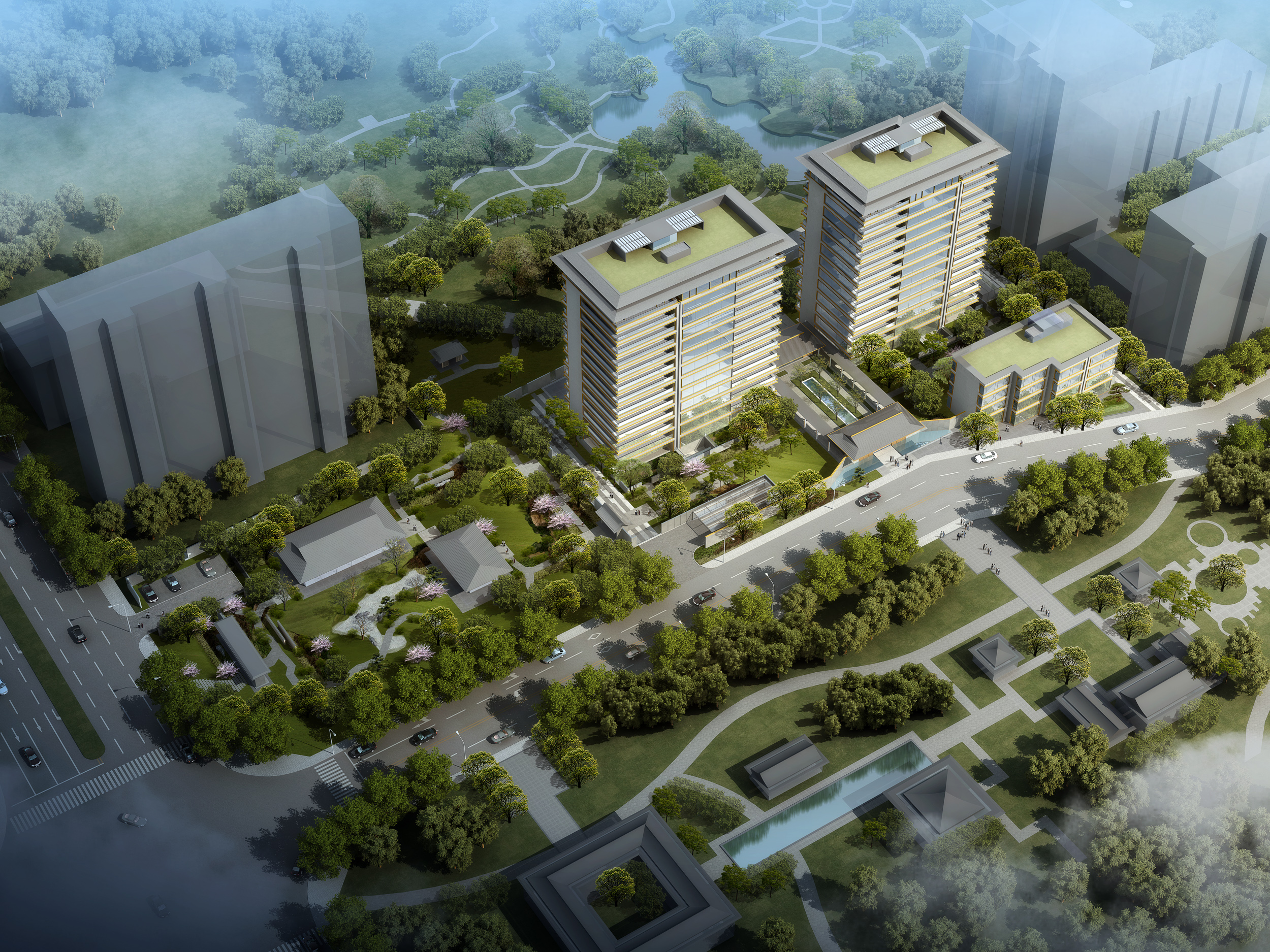 屋顶在中国古建筑中是一个很重要的部分,他不但解决了限定空间和遮⻛避雨的功能问题,更有精神和文化上的内涵,最高级的屋面是重檐庑殿顶,我们把这种屋面异化和简化后用于我们的主楼,比较高级的屋面有歇山顶,我们的示范区、入口⻔ 头、大堂屋顶就是现代简化的歇山,另外一些侧们小⻔用的是比较自由的两坡四坡顶,不同的屋面对应不同重要度的建筑。