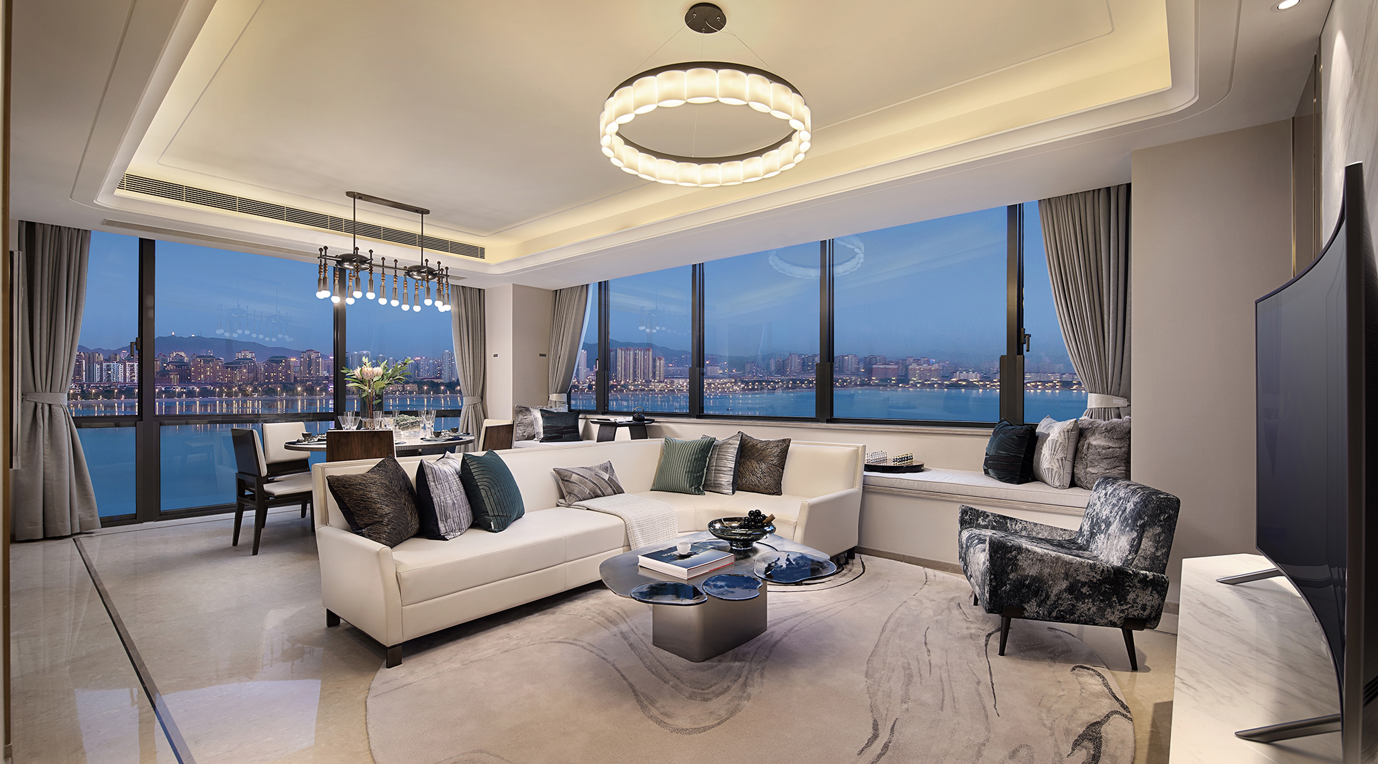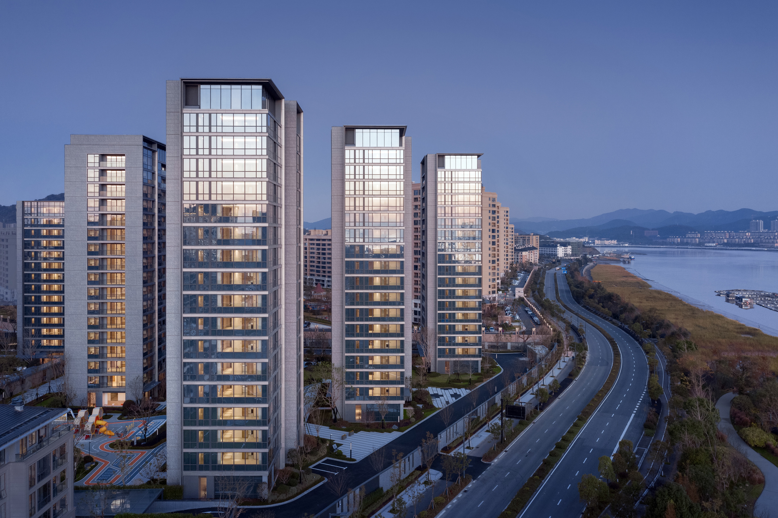 为了使长峙岛北侧的沿海立面更通透,高层住宅汲取现代建筑特点,将扁平化、一体化的玻璃窗户引入设计,采用LOW-E中空玻璃以及浅色金属漆型材,内外融合、虚实相间,打破室内外的界限。楼宇以海景为建筑倒影,大面积的窗户将海天一色纳入其中。