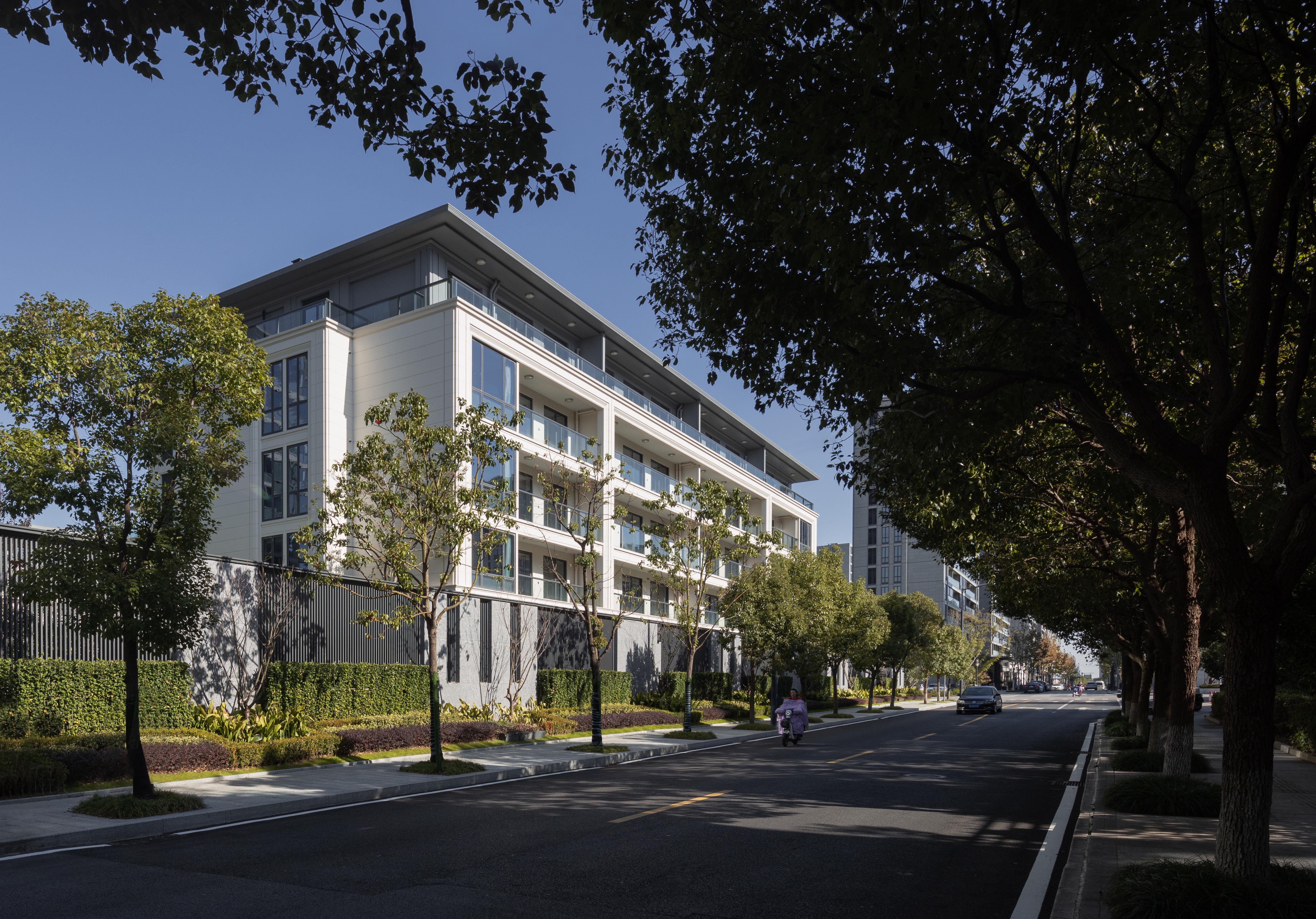 多层住宅沿街,材料与风格上区别于项目高层住宅,作为小镇中心与西边住宅区的过渡 ©山间影像